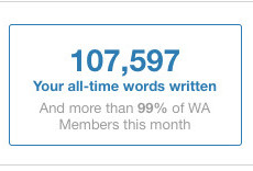 I saw this surprising number the other day that I've written over 107,000 words. I'm simply following the training here at WA to a T. I've stopped writing 4 days a week and dropped it down to 3 days weekly.