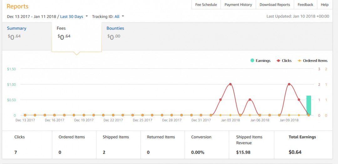 And then I came back to the same page because I am writing on a new product review post and had to get the link. I then refreshed again and I made another sale on 11 jan! So total earnings = 64 cents