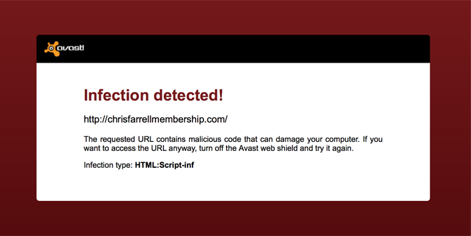So I can't view the Chris Farrell Membership website, ever. My "Avast" antivirus software is blcking the site completely.