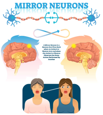 According to the Oxford dictionary, a mirror neuron is a brain cell that reacts both when a particular action is performed and when it is only observed. The “neural basis for empathy may be a system of mirror neurons.”