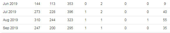 The following is what I made in each month from Dec 2018 to Sept 2019;