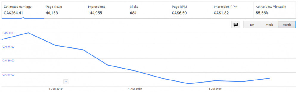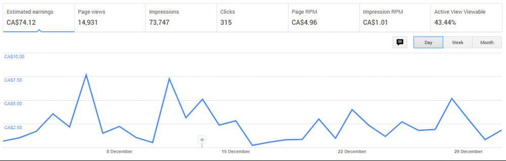 Well, so far this month, Adsense has been pretty solid for me. I've already earned $63.20 CAD, which is almost at par to what I earned in Nov. Will I beat the Dec 2019 Adsense Earnings?