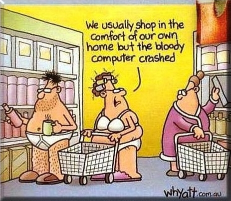 When you need a break, it's cheap entertainment. I swear some people don't own a mirror and the people in PJs and slippers.........unbelievable. I enjoy humor.