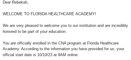 My mom signed me up for CNA classes, and I got this email an hour later. 🥹
