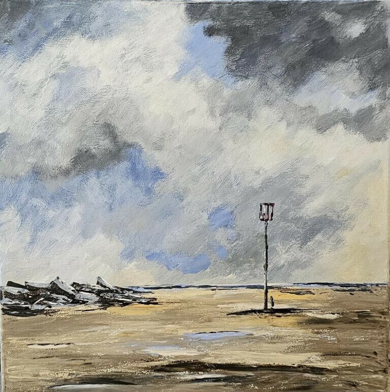 I had the morning painting one of my favourite beach scenes near where I live on the Norfolk coast in England. I’ve painted this scene more than I can remember, each one comes out differently, usually depending on how I’m feeling.