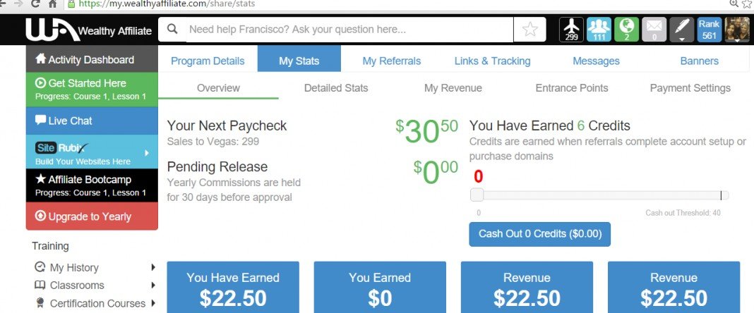 I felt a great satisfaction when today I received a message from Wealthy Affiliate with the results of my first month, which is not much but it's the reward for my efforts, I hope to find every time more positive messages.