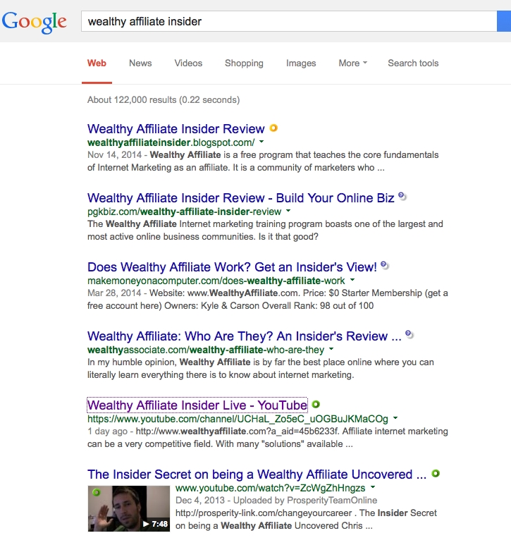 I mentioned in my last post that i was working with a new tool. I have an update. I ranked overnight (11 hours ago as of the time of this post) for the keyword wealthy affiliate insider using the software. I am not in the top spot, but on page 1 :)