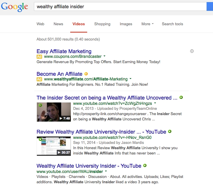 Now understand the competition is stiff for the keywords wealthy affiliate (review,scam, etc) so what i did was use a few tools to find less competing keywords and created two videos last night and posted them testing out the software. It took me awhile to get it all done, but that was 90% learning curve/technical issues/etc. Now that I have a better understanding I know the process will go faster.