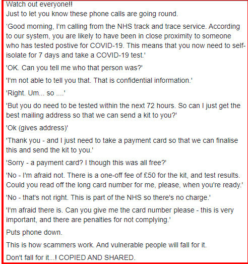 Some people wait to be told and if it seems like it's the Health Authority contacting you, even if it's not, then some people will fall for it.