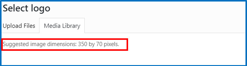 The suggested size is 350 x 70 pixels, but I prefer square logos and designed mine at 100 x 100 pixels.