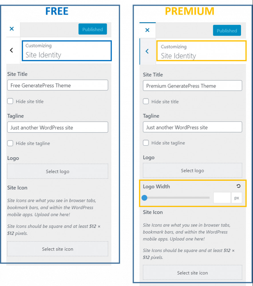 GeneratePress Basics (Part 2) - How to Customize Site Identity (Free vs Premium)