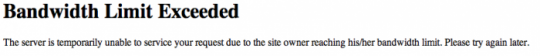 from what i've found so far there's monthly bandwidth with some web hosts, when you reach that limit this error comes up until you pay to upgrade to a higher bandwidth. I'm still not sure how high this is to cause the site to crash. I also haven't found any fine print or anything yet that says WA won't throttle or slow down connections with their "unlimited web hosting" or any limits, what I do know is risking something like this on the internet is not good for a website of any kind.