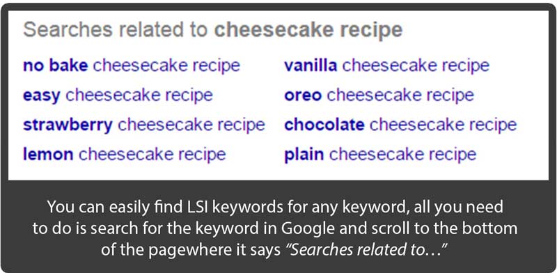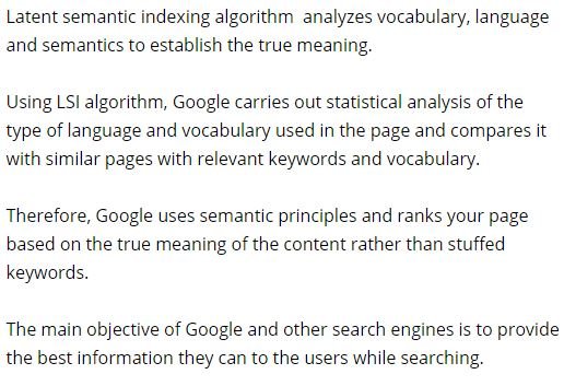 Google has confirmed that by using these type of secondary keywords your post or page will rank better. This makes a great deal of sense because people are searching for the same keyword in various ways. Using LSI Keywords your page will seem to include all the other relevant and related indexing by the Latent Semantic Analysis.