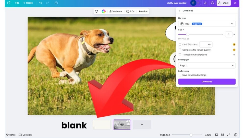 Thing is, I’d accidentally done something to that template creating a second page. The images I was doing was being done on the second image and I wasn’t downloading that. I was downloading page 1, which was the blank template.