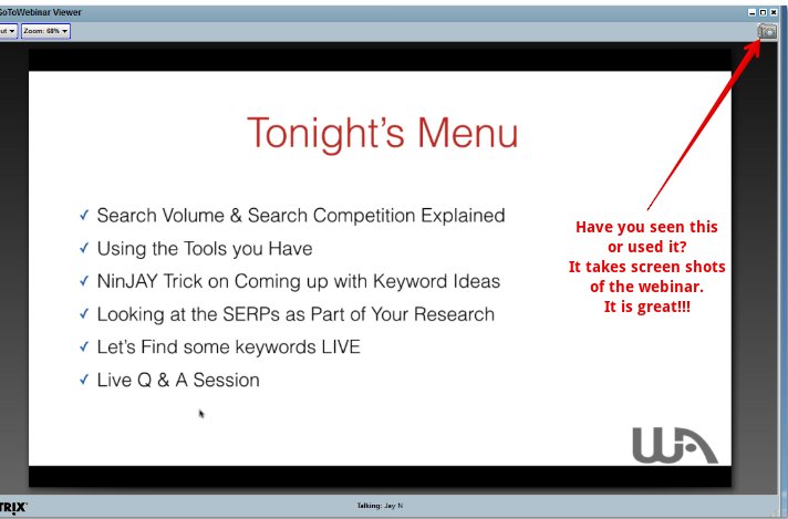 Right there in the top, right-hand corner. You can take screen-shots at any moment during the webinar!!!