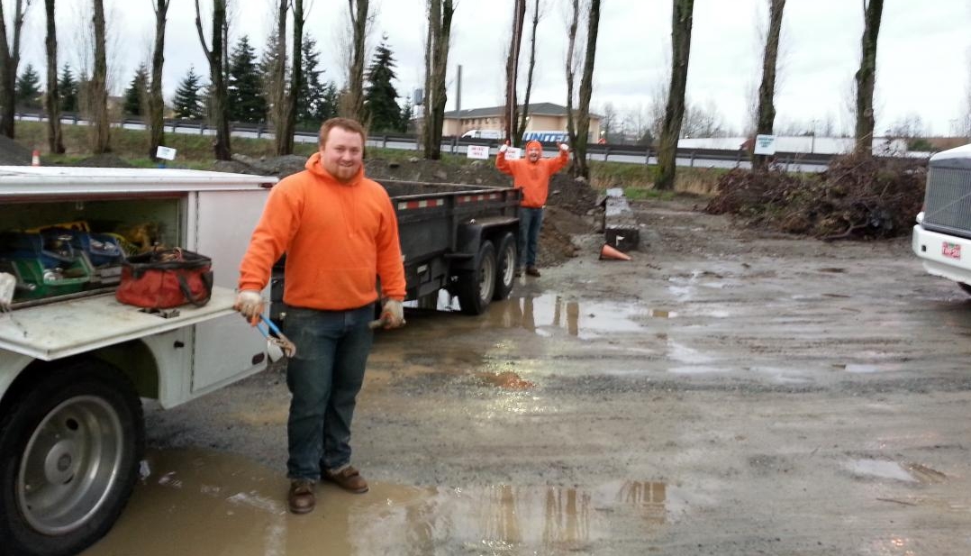 The next day started at 7:00 AM. The yard is a beehive of activity in the morning, filled with twenty-something-year-old construction workers in hard hats and bright colored shirts, jockeying trucks around, fueling, watering and chaining equipment down. Diesel exhaust and the sound of backup beepers filled the morning air.