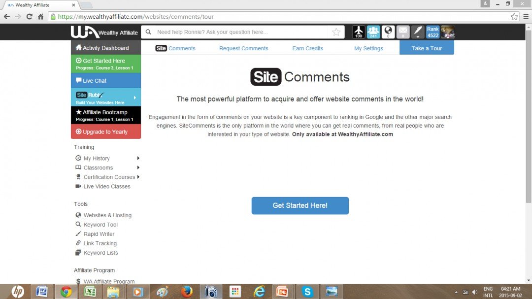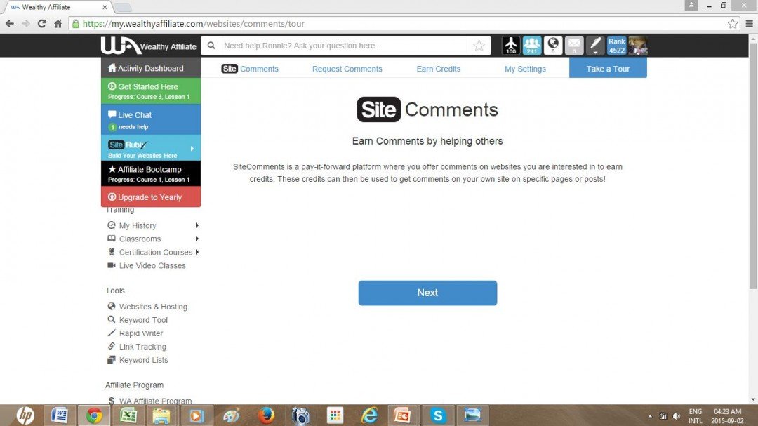 At the end of the tour and after all the set up is done, you will then be led to get started on reading posted pages and then commenting. Every time you comment and your comment is approved, you will earn a credit which gives you the privilege of having a post of yours read by another WA for comment.