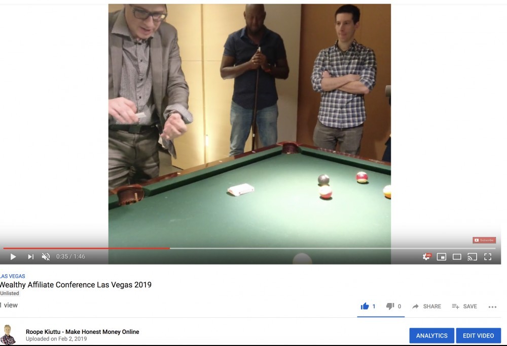 I have just published an exciting 107-second video of the Wealthy Affiliate Las Vegas conference on my YouTube channel “Roope Kiuttu - Internet Marketing Coach”.