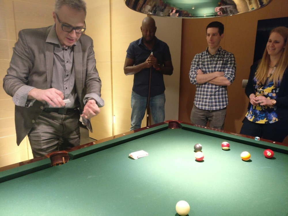 One evening there was a professional magician performing in the skyloft doing his tricks with cards, coins and stuff. He was very skillful.