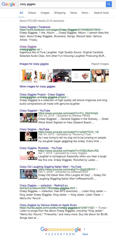 Google brings different results but every time the page is filled with links that take you directly to my audio album or description of it, with CrazyGiggles.US website being number one in the search results most of the time.