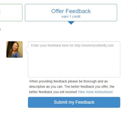 8. I really enjoyed this exersice and will be doing this regurally. I submitted another site feedback. Now my available credits are two, one for each feedback submission. With two credits, I am able to request one person's feedback.