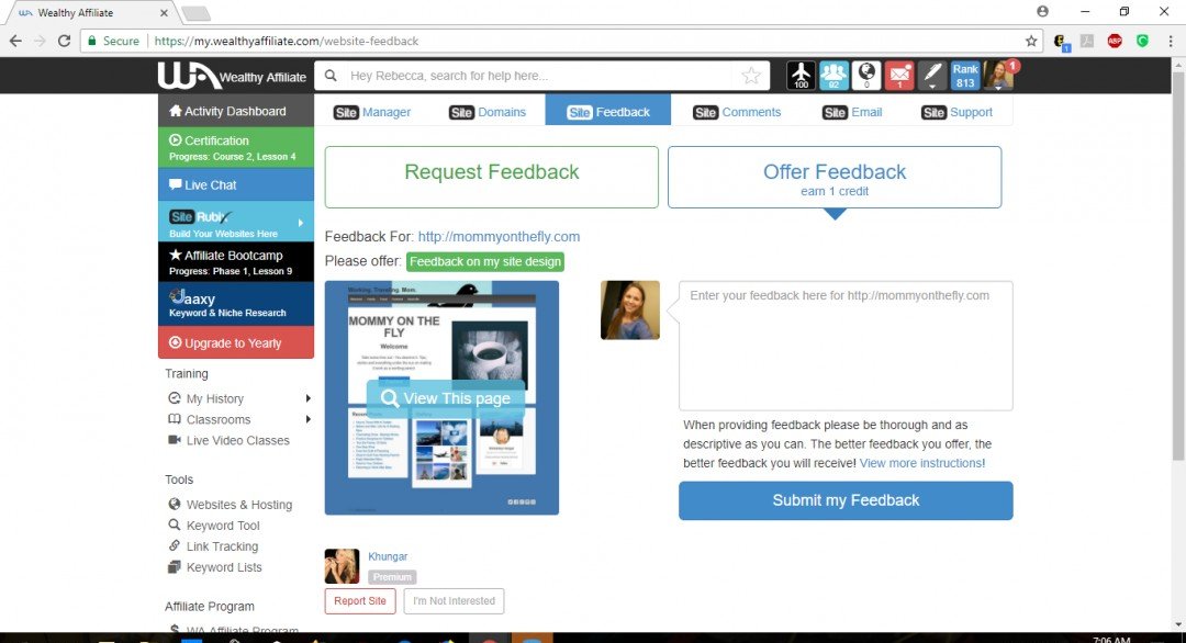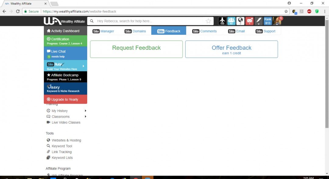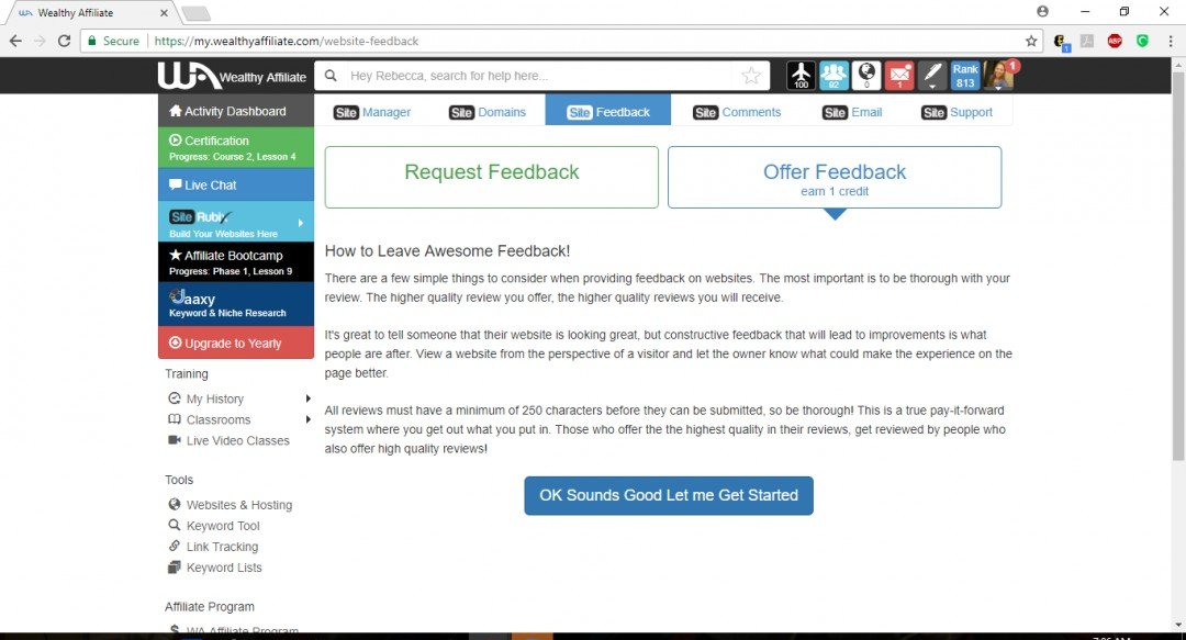 7. Return to your wealthyaffiliate.com tab. Type your feedback in the box.