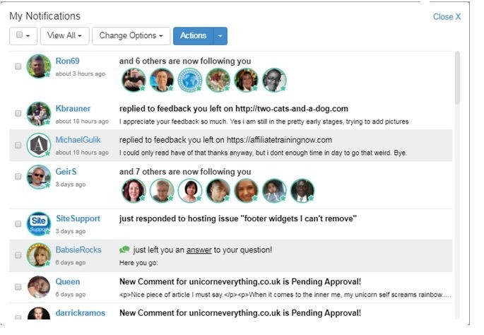 At the moment the only way I know is because I get an email in my yahoo account. I then have to open it and follow the link when I would really rather not have email open while I'm working because of all the other distractionary emails that come in. (There may also be a number by the bell icon, but when I open my messages, nothing corresponds to it, see question 3)