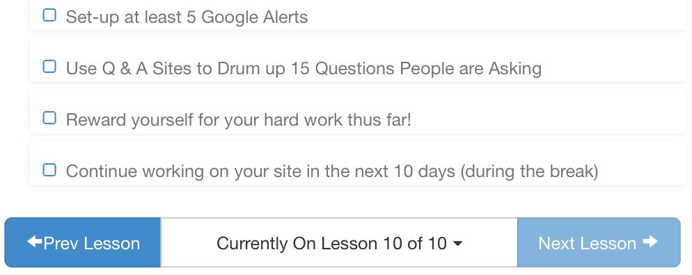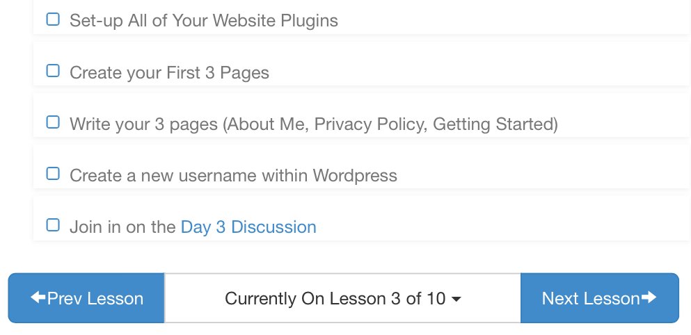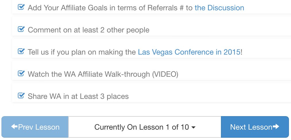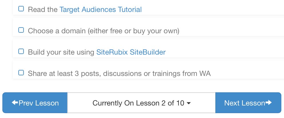 To make it easier for you, I compiled screen shots of the Lessons and the required tasks to be accomplished at each stage in the Affiliate Bootcamp - Course 1.