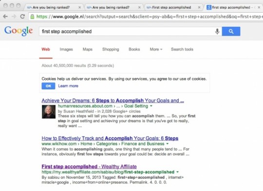 This Blog "First step accomplished" is listed at rank 3 in Google.nl! Awesome!