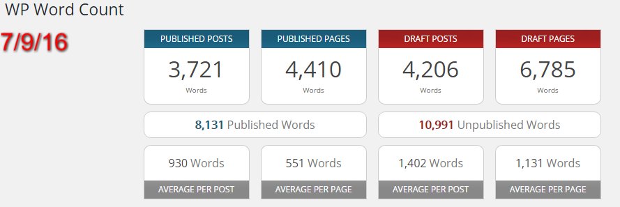 I installed a plugin called WP WORD COUNTwhich gave me the following stats: