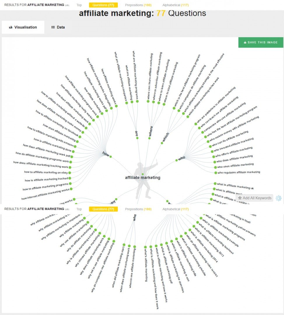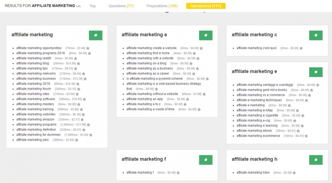 Here are some screen shots of the sample I did for this blog. I did a search on the term "Affiliate Marketing". And here are the results by section.
