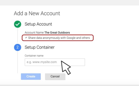 the domain name of the website that you're going to be installing the containers on. Brad Batesole from Lynda.com says, "When you think about an account, think about it as the highest level bucket that information is going to be stored in. The account has nothing to do with the actual tags that are going to be installed on the site. The account is really where all of the containers are going to live."