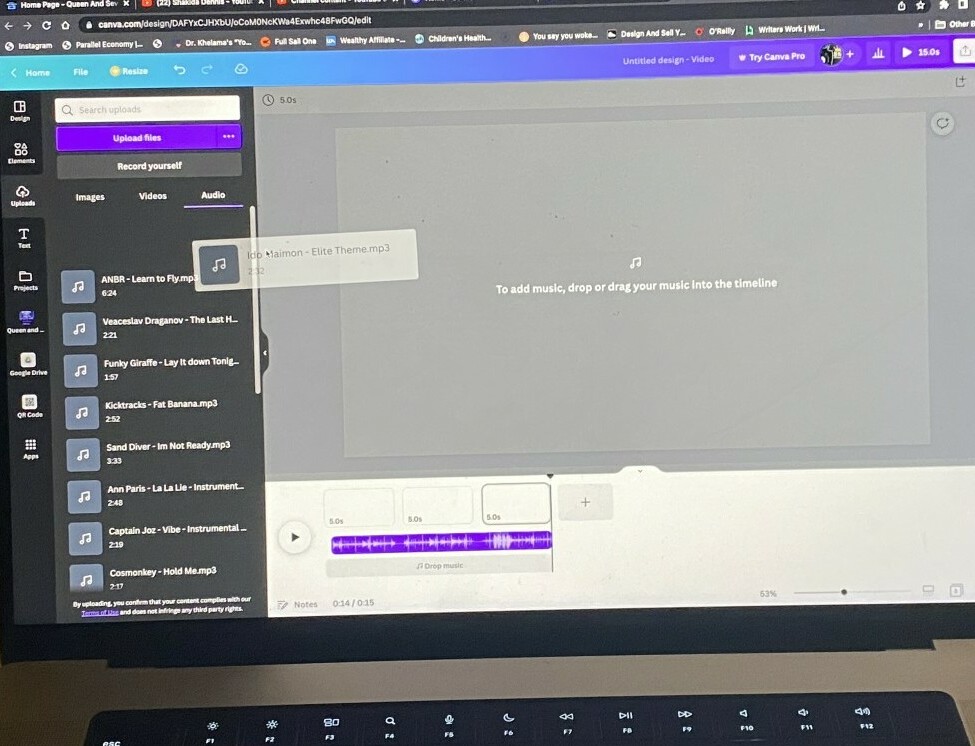 This is where all of your audio will be place at. And you can edit that audio however you see fit. In a future video I will show you how to do this in the FREE side of Canva.