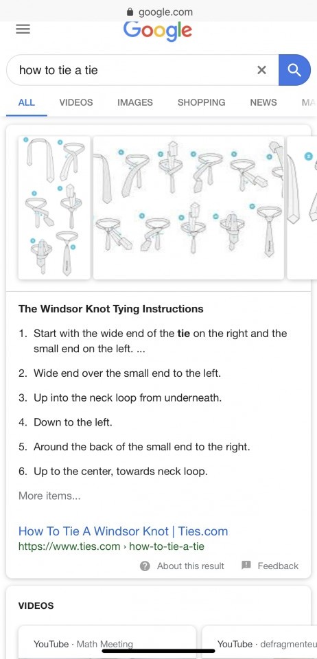 Every time I go to a wedding or a funeral I find that “how to tie a tie” snippet on Google.
