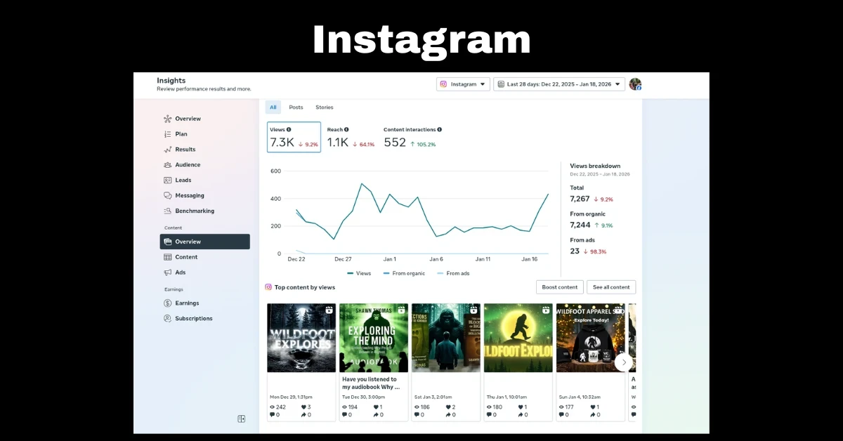 Instagram has been slower. Views are down compared to other platforms, but interactions are actually up. That tells me something important: the audience that is there is engaging more.