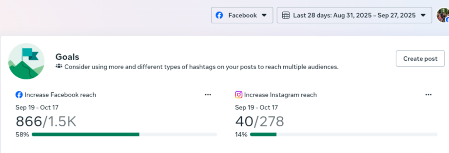 - Facebook Reach Goal: 866 / 1.5K (58% progress already)