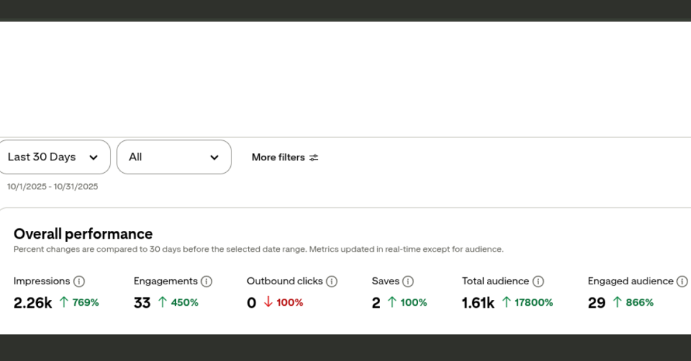 The past month alone saw impressions jump more than 700%, and engagement rose over 400%.