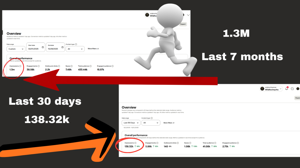 I started Wildfoot Explores back in March 2025 just to post my Bigfoot stuff morning coffee shots, theory posts, book links, and those deep-forest mystery visuals that make people stop mid-scroll.