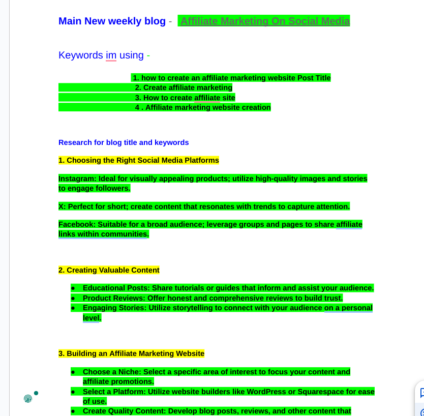 - Example Keywords: “How to start affiliate marketing” or “Affiliate marketing website tips.”