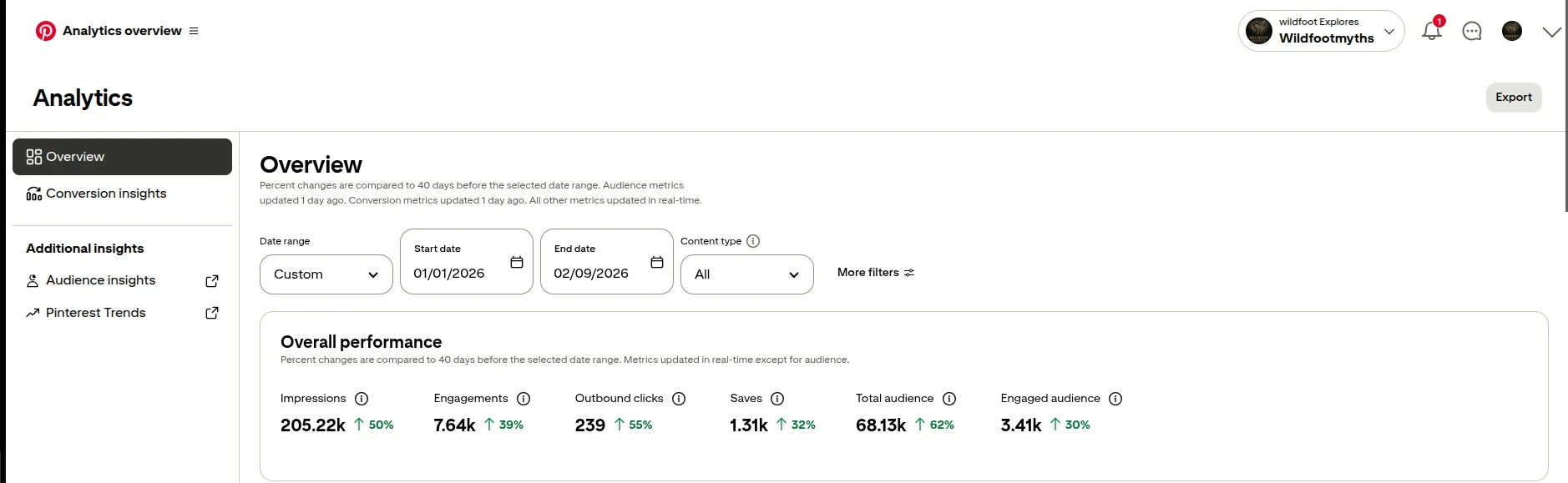 From January 1 to February 8, my Pinterest account generated:
