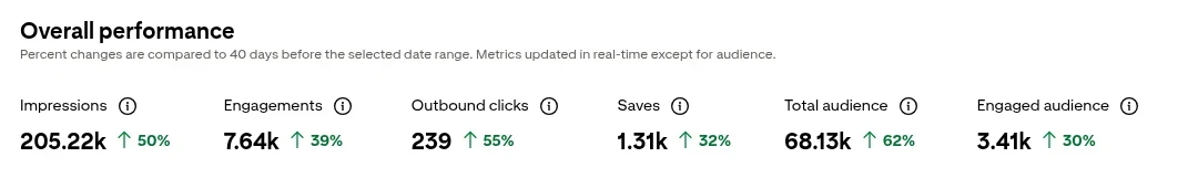 That means Pinterest showed my content over 200 thousand times in just over a month and over 68 thousand unique people saw it.