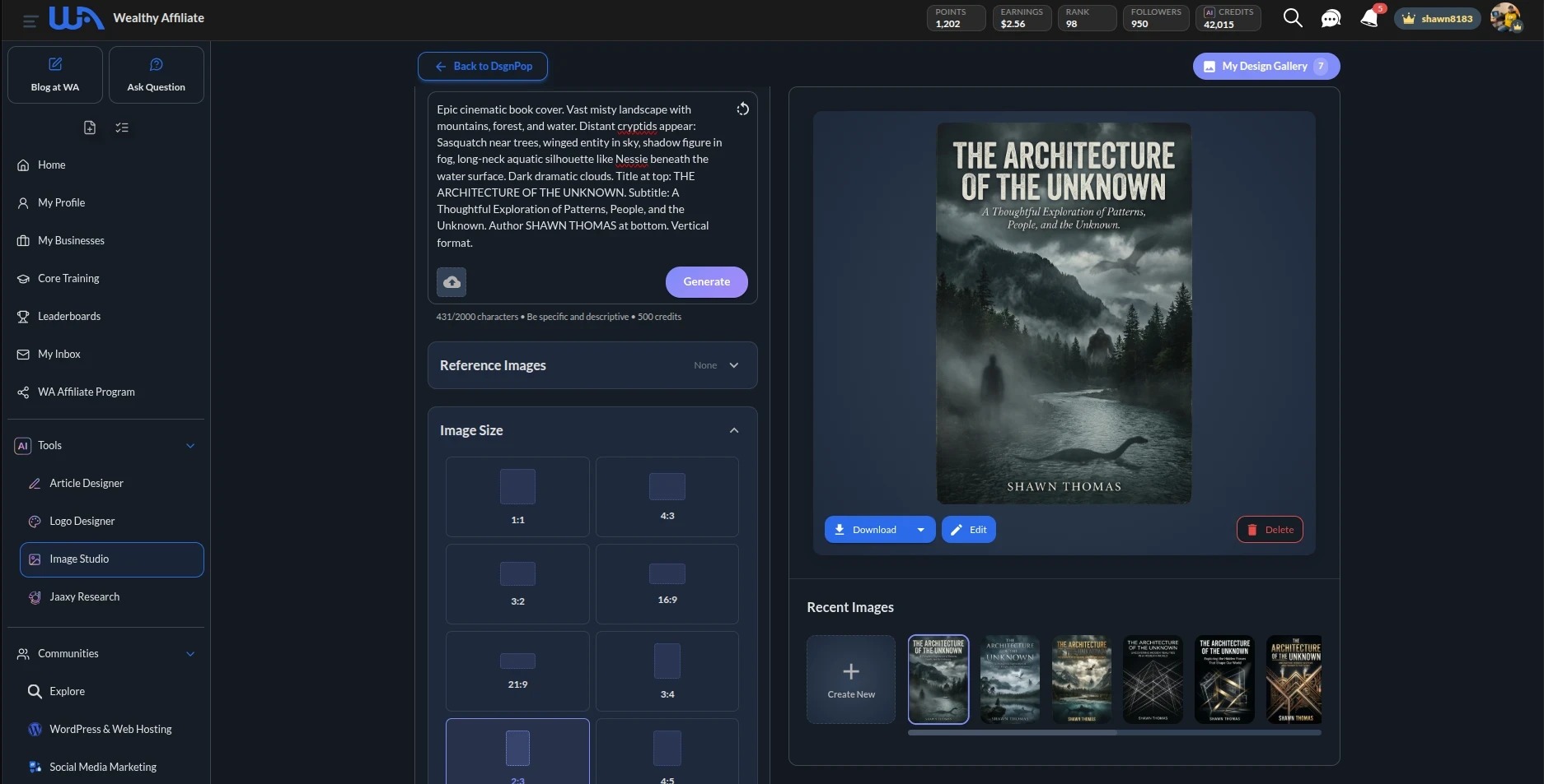 One of the biggest tools inside Wealthy Affiliate for authors is the AI Image Studio.