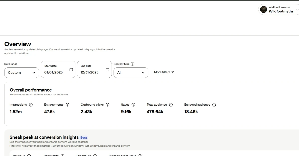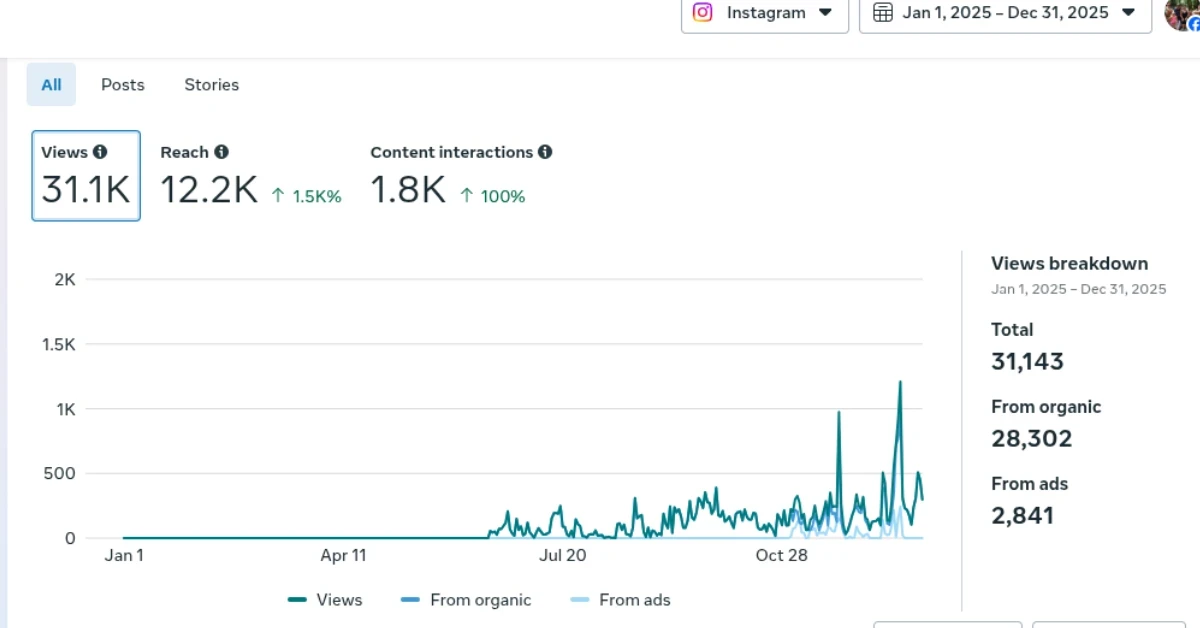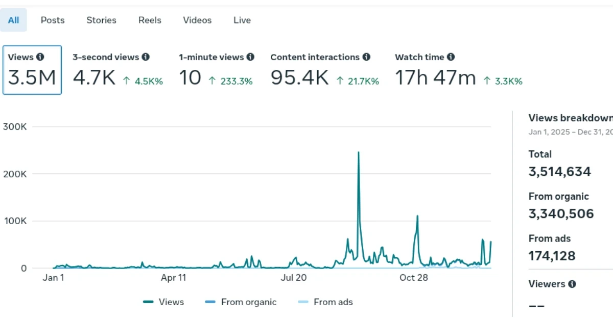 For context, my affiliate brand got 133K Facebook views in 2025 mostly from ads. This brand got 3.5M views mostly organic. Same person. Same year. Different belief