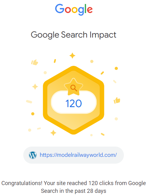 I also received an email from Google congratulating me on reaching 120 clicks in 30 days !