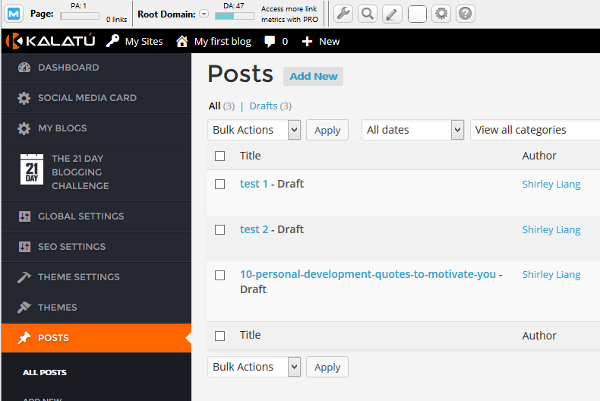 I paid $25 to get into the basic, it called Kalatu Blogging System. Nothing special, look the same as normal wordpress dashboard, but it put some function inside, it confused me a little while.