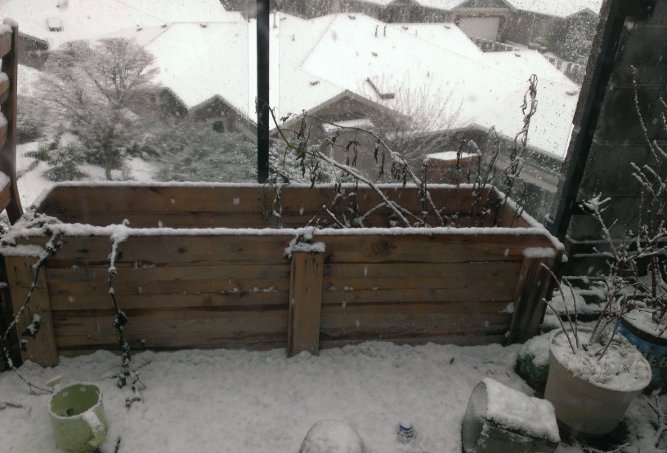 Sitting in front of my balcony, a glance to the outside, yelling excited: snowing! My hubby and me run to the glass door just like 2 little children, standing and yelling, so pretty and peaceful. We expected snow last year in Nanaimo as we just moved from the mainland, we used to have snow every year.