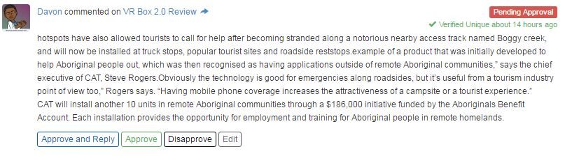 I have a niche website on VR headsets and when asked for a comment through the SiteComment thread, a really kind man left this comment -