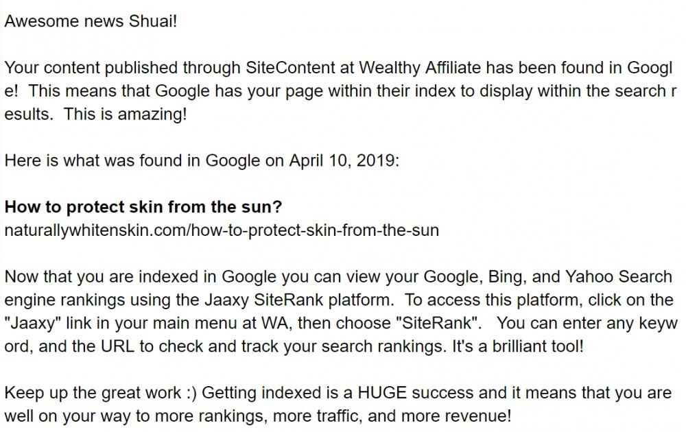 I recieved an email that noticed my website was indexed by google. I am so excited. But when I check it through Jaxxy, I find it is an empty joy. there is 0 search. who can tell my why it is? thanks a lot!