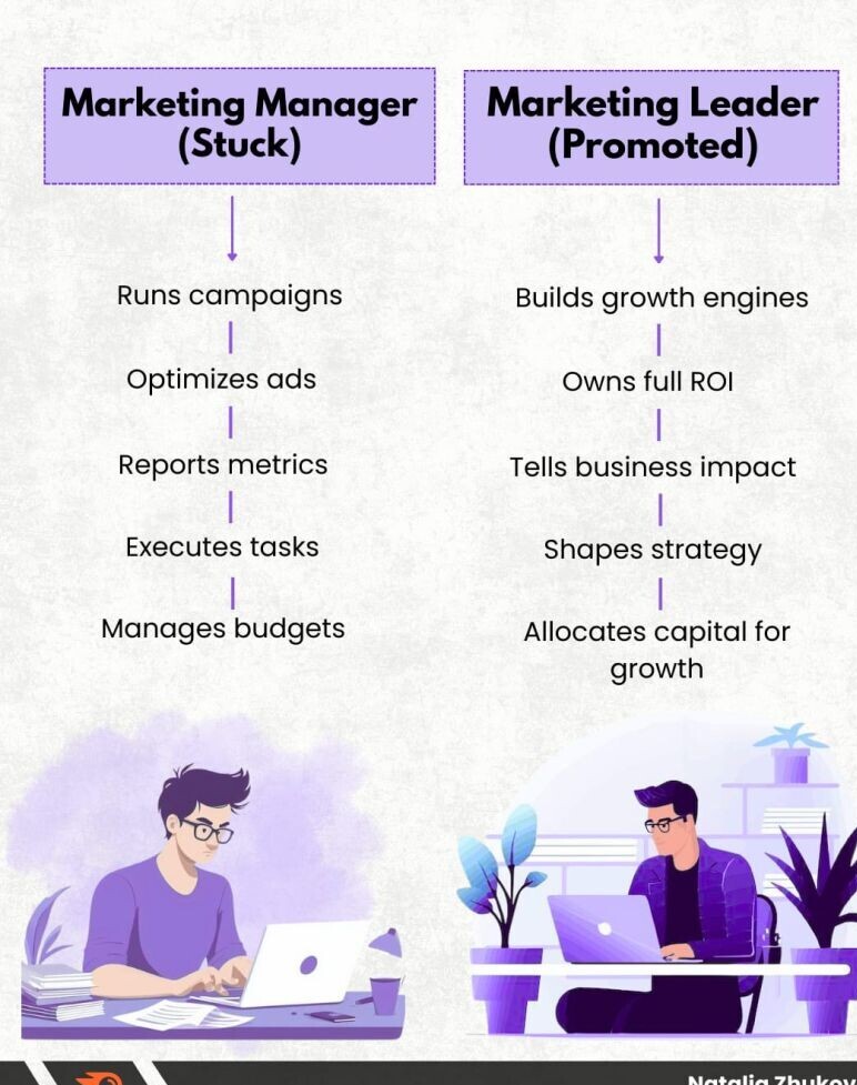 The role of a marketing manager vs marketing leader. Source: Linkedin
