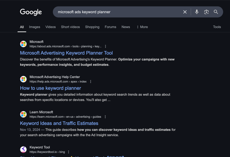 Gemini: "Yes, Microsoft Ads has a keyword planner tool, similar to Google Ads Keyword Planner."